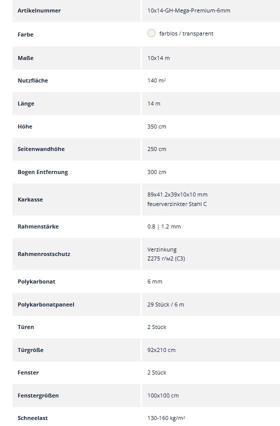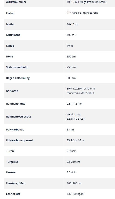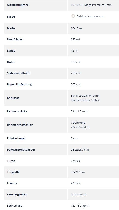 MEGA Gewächshaus - Treibhaus VICTORIA 10m breit, 6 mm PC + VERSAND KOSTEN